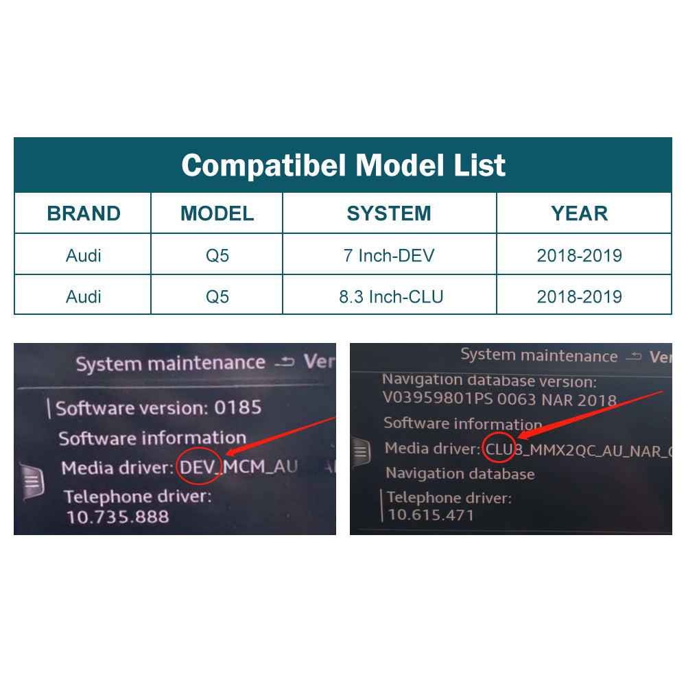 For Audi Q5 : 2009 - 2019 (mit MMI 3G / MMI 3G +/MIB)